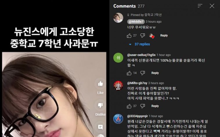 In response to the news, @Middle7 released a somewhat snarky video that made several headlines. Middle7 released a video on April 11th under the title “Middle7’s apology after being sued by NewJeans.” The YouTuber says in the video, “So, NewJeans’ label sued me… When I awoke, what was happening? The fact that I chose not to apply for revenue generating, nevertheless, is a relief. LOL. However, I’m still human, therefore I’m anxious and afraid. I wasn’t at all interested in idols at first, but after making videos for pleasure, I’ve come this far. I didn’t want to become this well-known, sigh. Since Minji already wrote an apology, I won’t write one here. Middle7 sarcastically posted their comment, “So scared ㅠ,” in the video’s comment section.
