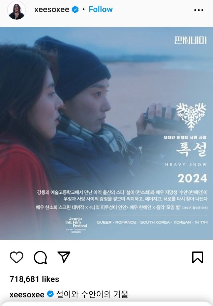 An update from Han So Hee’s social media regarding her Girl Love movie ‘Heavy Snow’