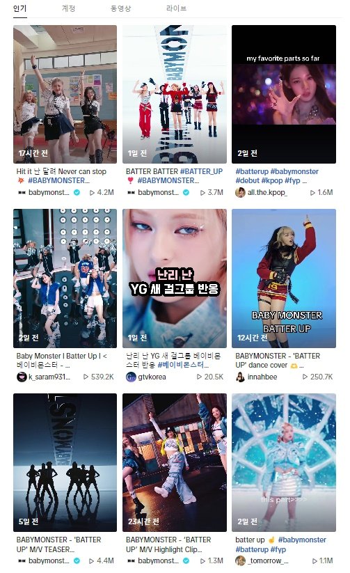 Baby Monster’s debut song, “Batter Up,” has been trending on the global short-form platform TikTok. In just two days after the group’s debut, over 5 million videos with the hashtag “#BATTERUPCHALLENGE” have been uploaded to TikTok.