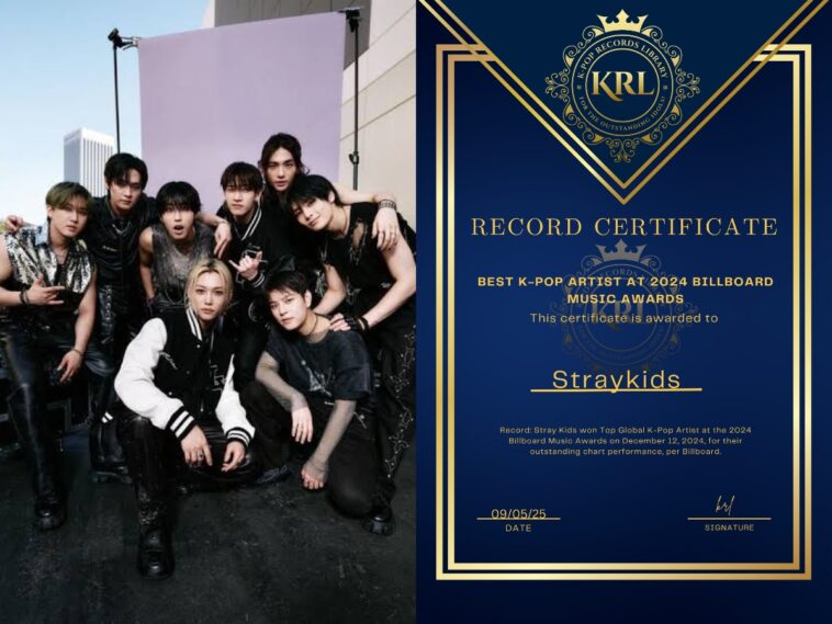 The K-Pop Records Library awarded Stray Kids a certificate, honoring their Top Global K-Pop Artist win as a radiant showcase of their chart-conquering legacy and K-pop’s global ascendancy in 2024. Their 2024 releases, ROCK-STAR (14 weeks at No. 1 on World Albums) and ATE (No. 1 on Billboard 200 with 232,000 units), drove their dominance, with ATE ranking No. 9 on Billboard’s Top Album Sales, per The Korea Herald. X posts (@BBMAs, @Stray_Kids