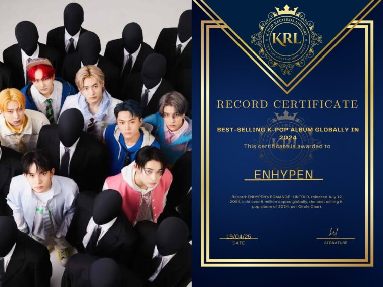 ENHYPEN soared to new heights when their second studio album ROMANCE : UNTOLD became the best-selling K-pop album worldwide in 2024, a record certified by the K-Pop Records Library on March 27, 2025. Released on July 12, 2024, under BELIFT LAB, the album sold over 5 million copies globally, per Circle Chart and posts on X, outpacing competitors like Stray Kids’ ATE and Jimin’s MUSE. This milestone underscored ENHYPEN’s explosive growth and the fervor of their fanbase, ENGENE.