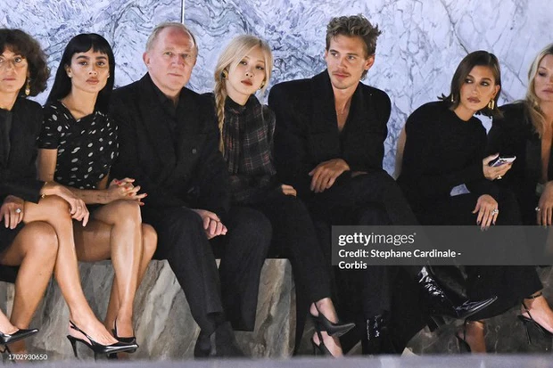 François-Henri Pinault, CEO of the Kering Group, was joined by Rosé, Hailey Bieber, Kate Moss, Austin Butler, and Zoe Kravitz in the front row of the Saint Laurent presentation.
