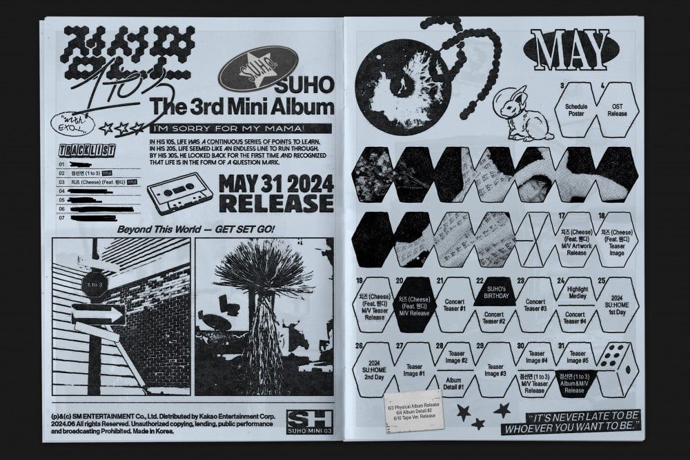 The singer revealed the teaser schedule chart and photographs at midnight KST on May 3. The teaser timetable says Suho will release an OST on May 4 and teaser content on May 17, starting with music video artwork.