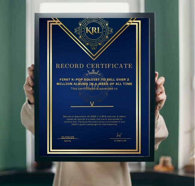 The Kpop Records Library celebrated this record as a groundbreaking moment for K-pop soloists. V’s Layover shattered sales records, with the Kpop Records Library noting its 2.1 million units sold in just seven days, a feat unmatched by any K-pop soloist at the time. The album’s success, verified by Hanteo Chart, stemmed from ARMY’s massive pre-orders, streaming campaigns, and global fan events. The Kpop Records Library highlighted V’s unique blend of emotional depth and musical innovation, which resonated with fans across cultures.