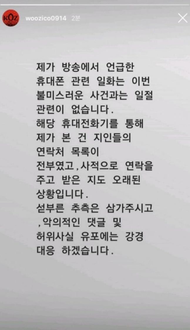 Zico faced reaction after the BBC documentary “Burning Sun: The Women Who Exposed the K-Pop Stars’ Secret Chatrooms” was released on the 19th. The documentary discusses the ‘Burning Sun controversy,’ including former BIGBANG member Seungri and FT Island singers Jung Joon Young and Choi Jong-hoon, who were accused of sexual assault and unlawful video dissemination. Zico’s social media posts were flooded with scandal references after the documentary’s release. Included comments, “Your friend’s golden phone was on BBC News,” “Explain the golden phone,” “What did Jung Joon-young’s golden phone show? Share with us,” I saw the BBC Burning Sun documentary,” and “What was on the golden phone you read so well?” Zico said on MBC’s ‘Radio Star’ in January 2016, three years before the Burning Sun affair, that Jung Joon-young owns a “golden phone.” This phone was solely used for emergencies and KakaoTalk, like a “Pokémon directory” with many contacts. Zico questioned Jung Joon Young, “You don’t have that anymore, right?” during the show. Jung Joon-young affirmed, “I still have it. Zico visits my house and asks, ‘Where’s the golden phone?’ He reads it on the bed like his own.” Zico searches phone contacts alphabetically, Jung Joon-young said. Zico didn’t explain why he called it the “golden phone,” but the show portrayed it as Jung Joon-young’s contact list. Zico’s statements reappeared after Jung Joon-young was convicted of illegally shooting and disseminating footage. Zico stated, “The story about the phone I mentioned on the show has nothing to do with this unfortunate incident.” He continued, “All I saw on that phone was a list of contacts, and I haven’t spoken to Jung Joon-young in a while. Please avoid snap judgments. I will strongly punish hostile comments and misinformation.” Zico was not involved in the Burning Sun controversy or Jung Joon Young’s unlawful filming and dissemination. Zico appeared at Yonsei University’s event after the controversy emerged. Many online and social media remarks expressed concern, including “Inviting Zico is an embarrassment for the school,” and “Did it have to be Zico?” Students posted posters on campus denouncing the decision. Inha University Consumer Studies professor Lee Eun-hee said, “Inviting singers to university festivals indirectly uses students’ money through tuition fees and student union dues. Consumers should voice concerns about thoughtlessly inviting socially controversial figures.