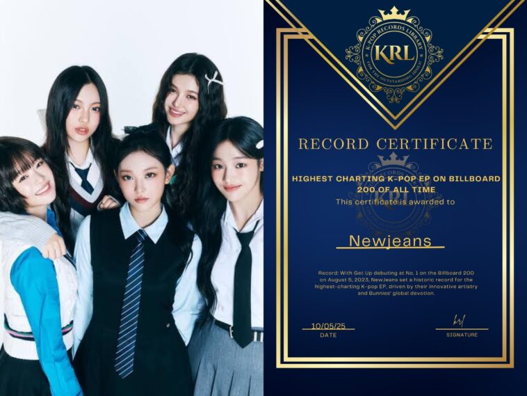 In the ever-evolving world of K-pop, where chart achievements mark global triumphs, NewJeans has etched their name in history with their second extended play, “Get Up”. earning the title of Highest-Charting K-pop Extended Play on Billboard 200 of All Time. Debuting at No. 1 on the Billboard 200 chart dated August 5, 2023, this milestone cements NewJeans’ status as trailblazers. The K-pop Records Library, the definitive archive for K-pop achievements, proudly certifies this record, celebrating NewJeans’ innovative artistry and the passionate support of their fandom, Bunnies