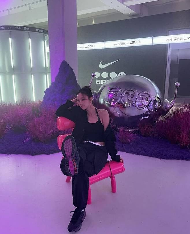 The photographs show Hyeri enjoying a sports brand’s pop-up store. She stood out in a black crop top and blazer and provided a trendy mood with varied poses under the artsy lighting.
