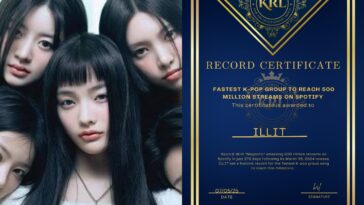 ILLIT remains prominent on US Billboard charts. On July 6, KST, Billboard’s ‘Global (Excl. US)’ and ‘Global 200’ charts placed ILLIT’s debut mini album ‘SUPER REAL ME’ and its title track “Magnetic” at 20th and 30th, respectively, marking their 14th consecutive week on these charts. Previously, “Magnetic” debuted at 91 on the Hot 100. ILLIT became the first K-pop group to have both their debut single and album chart on Billboard’s main charts when ‘SUPER REAL ME’ arrived at 93. “Magnetic” reached 80 on the Official Singles Top 100 in the UK, a record for a K-pop debut song. In its 11th week on the Oricon Weekly Streaming Ranking in Japan, “Magnetic” reached 100 million streams faster than any other female group. Billboard declared ILLIT’s success “unprecedented for a K-pop debut.” ILLIT was crowned ‘K-pop Rookie of the Month’ for June 2024, citing their high performance on the ‘Global 200’ and ‘Global (Excl. US)’ charts as proof of their international popularity.