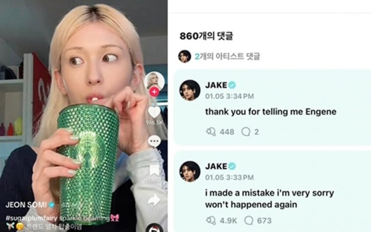 Jeon So Mi deleted a TikTok video after receiving flak for using a Starbucks tumbler. Jake of ENHYPEN apologized to followers after sipping a Starbucks drink during a Weverse live.