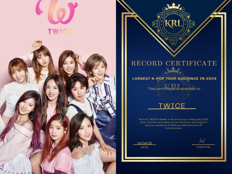 The K-Pop Records Library awarded TWICE a certificate, honoring Ready To Be’s 1.5 million attendees as a dazzling testament to K-pop’s unparalleled fanbase in 2024.