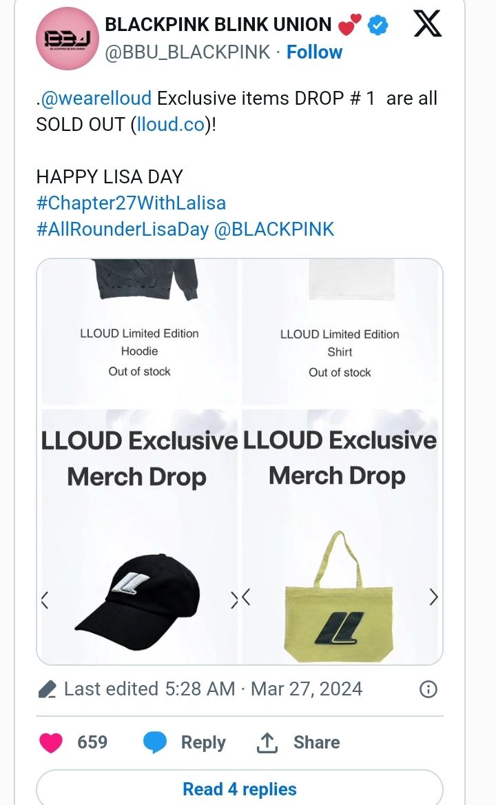 Following the announcement, all products sold out and the website crashed due to tremendous demand. Social media users expressed their sadness because the products were limited edition and came from Lisa, so they would run out quickly. However, they did not expect to not be able to use their debit cards while browsing the catalog.