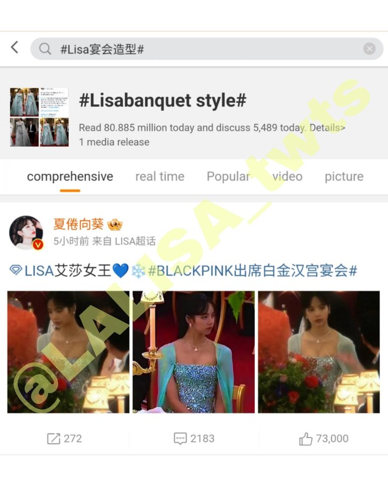 The hashtag “Lisa banquet style” has over 110 million reads, making it a popular Weibo subject.