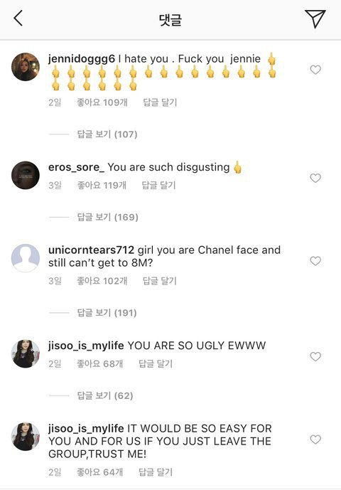 5. Wow, seriously looking at the comments posted on Instagram overseas, the fans of Blackpink are really bad, but it’s ridiculous, but foreigners really curse at Korea, and Koreans don’t like foreign members