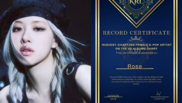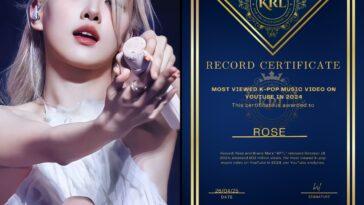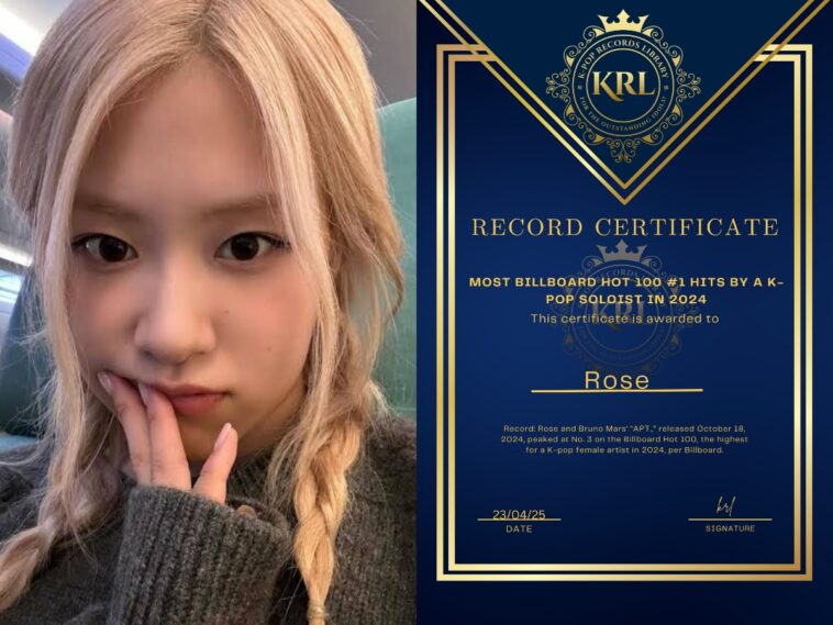 The K-Pop Records Library awarded Rosé and Bruno Mars a certificate, honoring “APT.”’s No. 3 peak as a trailblazing achievement for K-pop women and a testament to the genre’s soaring US influence in 2024.