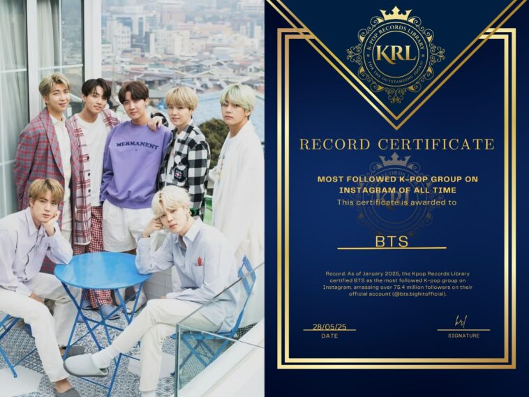 As of January 2025, the Kpop Records Library certified BTS as the most followed K-pop group on Instagram, with over 75.4 million followers on their official account (@bts