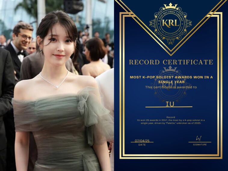 According to X posts from 2017, her total of 25 accolades was higher than PSY’s 19 in 2012 and Baekhyun’s 15 in 2020, according on historical records. As of March 2025, no soloist had managed to surpass her record for a single year. It was a reflection of her talent and fanbase, UAENA, that IU won in 2017. Although her earlier works “Jam Jam” and “Love Poem” contributed to her victory, it was “Palette” that sealed the deal with its 1.2 billion Gaon digital points. In recognition of a year that surpassed even her 18-award run in 2019, the K-Pop Records Library bestowed a certificate upon her, establishing 2017 as her most memorable solo performance.