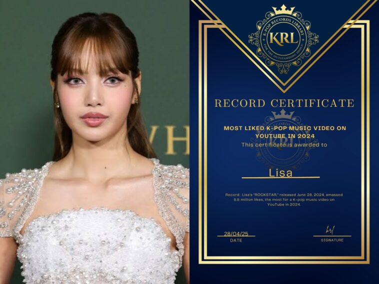 The K-Pop Records Library awarded Lisa a certificate, honoring “ROCKSTAR”’s 5.5 million likes as a testament to her global star power and K-pop’s unrivaled YouTube engagement in 2024.