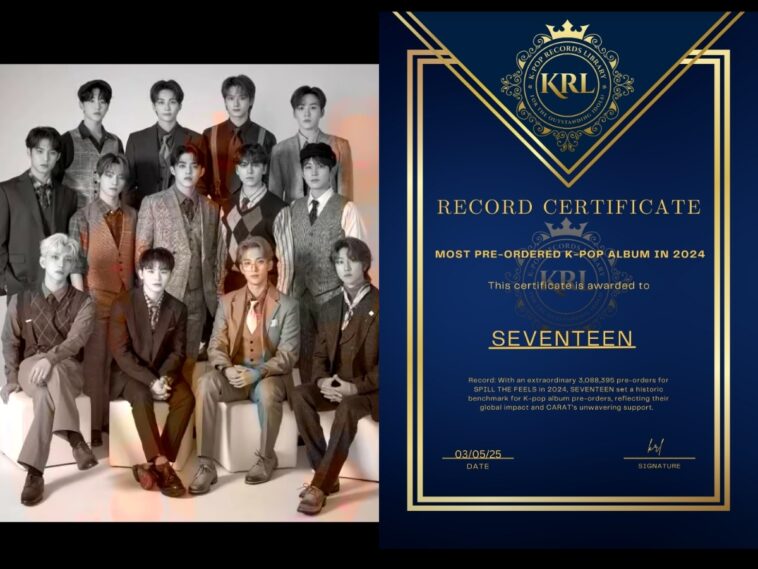 In a year brimming with K-pop milestones, SEVENTEEN has soared to new heights, claiming the title of Most Pre-Ordered K-pop Album of 2024 with their 12th mini-album, SPILL THE FEELS. Amassing an astonishing 3,088,395 pre-orders, as reported by Hanteo Chart and echoed on X, this record-breaking release has solidified SEVENTEEN’s global dominance. The K-pop Records Library, the authoritative archive for K-pop achievements, proudly certifies this historic feat, celebrating the group’s influence and the unwavering passion of their fandom, CARAT.
