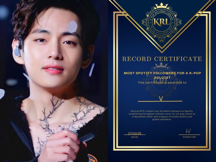 BTS’s V, referred to by fans as Kim Taehyung, achieved the record for the most number of Spotify followers for a K-pop soloist, a milestone recognized by the K-pop Records Library (KRL). By March 29, 2025, V had accumulated over 19 million followers on the network, a testament to his exceptional popularity and affirmation of his standing as a solitary juggernaut. This accomplishment, confirmed as of early 2025, signified a pivotal point in K-pop’s digital supremacy.