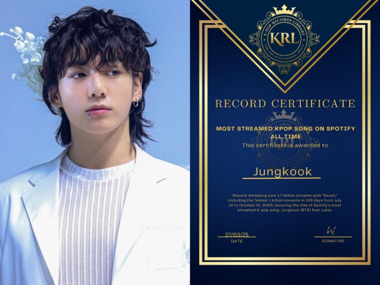 In a digital success, BTS member Jungkook, along by fellow rapper Latto, gained the title of most streamed K-pop song on Spotify with “Seven.” This seductive pop hit, which was released on July 14, 2023, not only broke records, but also shattered them. The K-pop Records Library (KRL) acknowledged “Seven” as a streaming powerhouse by March 17, 2025, solidifying Jungkook’s solo reputation on the international scene. The story told by the numbers is thrilling. “Seven” set a Guinness World Record for the most streamed song on Spotify during its first week of release with 89,748,171 plays. Not only that, but it became the fastest song to reach 100 million streams on the site within eight days of its debut. Just 109 days after its release, on October 31, 2023, it had surpassed 1 billion streams, surpassing all previous K-pop songs and setting yet another Guinness record.
