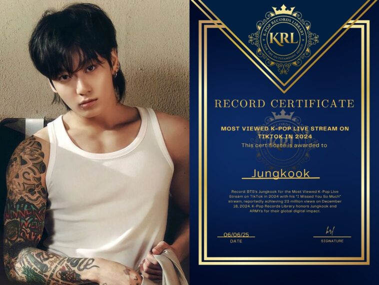K-Pop Records Library is thrilled to celebrate a digital milestone that underscores K-Pop’s massive influence on social media: BTS’s Jungkook holds the record for the Most Viewed K-Pop Live Stream on TikTok in 2024 with his “I Missed You So Much” stream, reportedly amassing 23 million real-time views on December 18, 2024. K-Pop Records Library proudly honors this achievement, driven by Jungkook’s global appeal and the unwavering dedication of ARMYs.