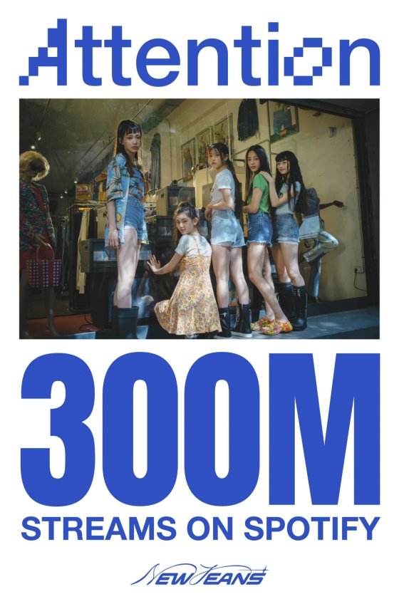 The debut song ‘Attention’ by the group NewJeans (Minji, Hani, Danielle, Haerin, Hyein) exceeded 300 million streams on Spotify.