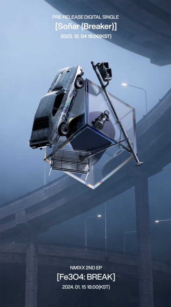 In the motion poster, a cubic transparent object appeared like a magnet attracting all kinds of objects, including cars, traffic lights, and benches, on a desolate street where thick fog dims even the streetlights, creating a strange feeling. As the cube breaks, the scattered fragments create a shape like an elemental symbol, and are soon reorganized into the new album ‘Fe3O4: BREAK’, delivering a strong impact. ‘Fe3O4’ is one of the chemical symbols for magnetic materials, and ‘Sonar’ in the pre-released single ‘Sonar (Breaker)’ means ‘to dream.’ Like the refreshing album name, NMIXX is expected to show off its unique charm and warm up fans’ hearts.