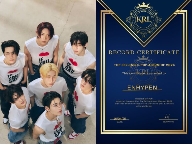 During a monumental year for Korean pop music, ENHYPEN reached new heights with Romance: Untold, which was officially acknowledged by the K-pop Records Library (KRL) as the Top-Selling K-pop Album of 2024. After The Tortured Poets Department by Taylor Swift, Romance: Untold became the best-selling K-pop album of the year with over 3.4 million units sold worldwide. It was also the second best-selling album overall. This remarkable feat highlighted ENHYPEN’s meteoric rise on the global arena.