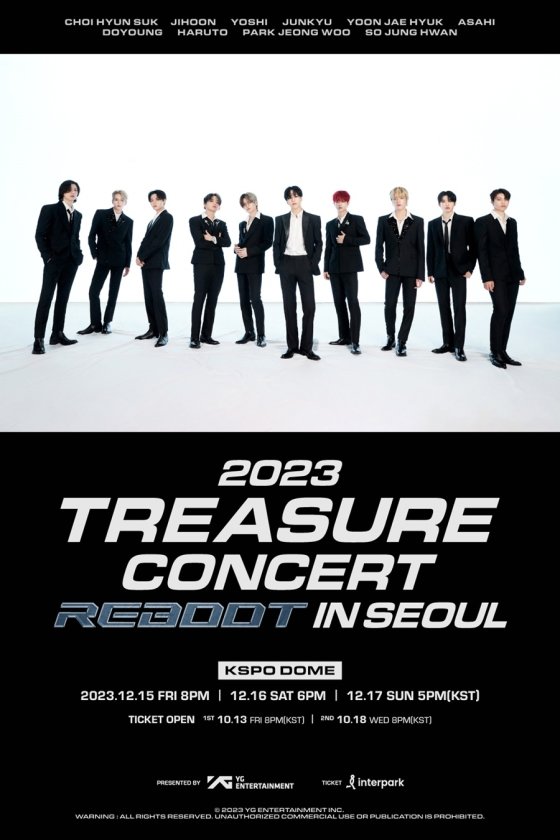 According to its agency YG Entertainment on September 26, Treasure will hold the ‘2023 TREASURE CONCERT [REBOOT] IN SEOUL’ at the KSPO DOME in Seoul Olympic Park for three days from December 15 to 17. This is their first solo concert in about 1 year and 1 month since their ‘[HELLO] in SEOUL’ concert in November 2021.