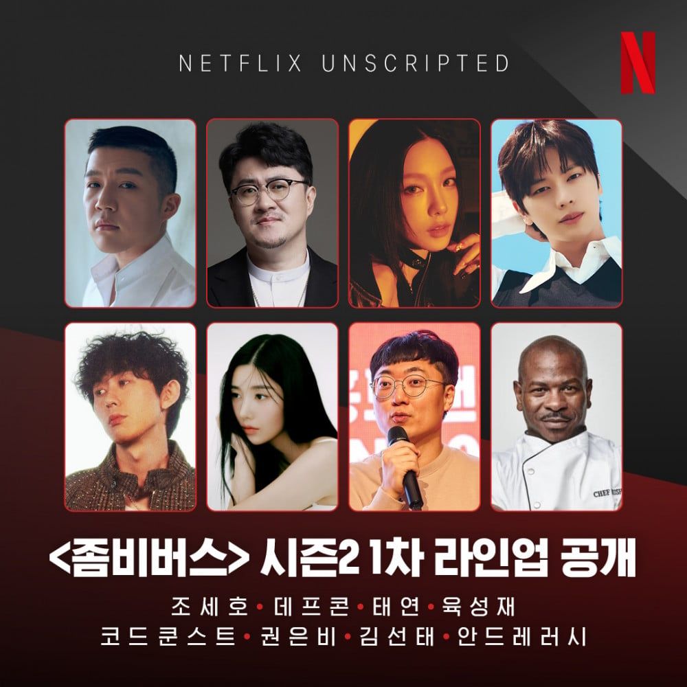 Netflix posted the below teaser poster for season 2 of the reality show on May 9, revealing Girls’ Generation’s Taeyeon, Kwon Eun Bi, Jo Se Ho, Defconn, BTOB’s Sungjae, and Code Kunst. The cast also includes Chungju City PR officer Kim Seon Tae and former White House chef Andre Rush.